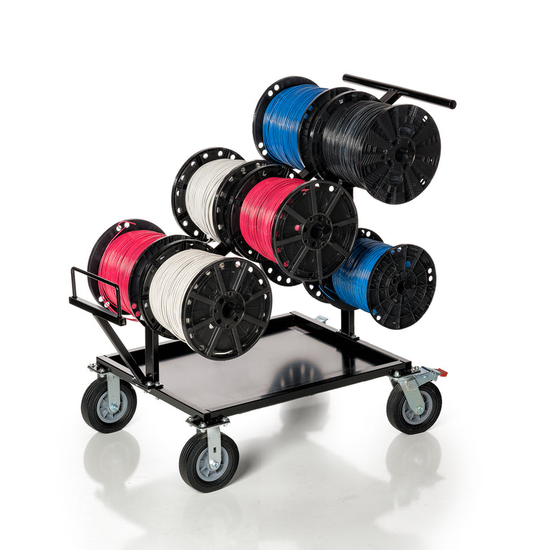 This cart is ideal for professionals working with large spools of wire, offering convenience and practicality on the job.
