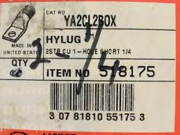 The Burndy YA2CL2BOX One-Hole Standard Barrel Lug is an #2 AWG BROWN lug with 1/4 bolt size. It is made from electrolytic copper and plated for corrosion resistance. The lug is used with MD7-34R, Y500CTHS, Y750, Y46 or PAT750 crimping tools.