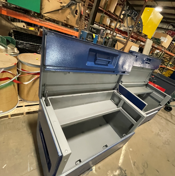 The Model 69 STORAGEMASTER Piano JobBox storage cabinet with Casters measures 60in wide, 40in tall and has a capacity of 35.3 cu ft.