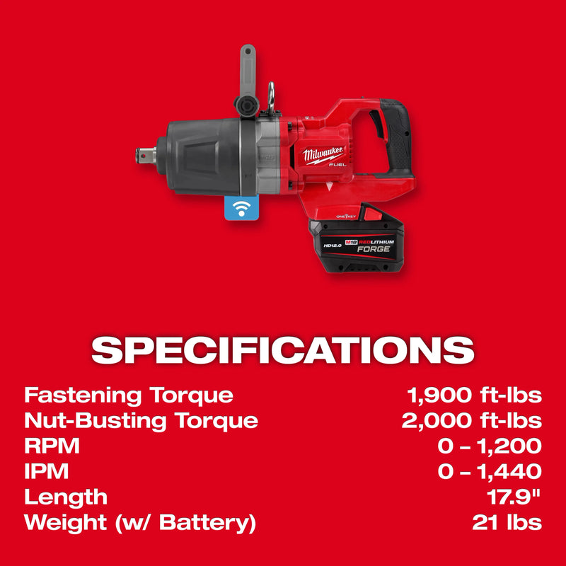Industry’s most powerful cordless 1″ D‑handle wrench with POWERSTATE brushless motor delivering up to 2,000 ft·lb nut‑busting torque. ONE‑KEY enabled for tool customization, tracking, and management.