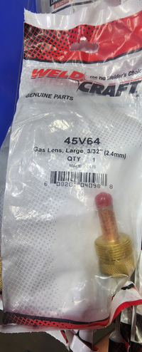 Weld Craft 45V64 Gas Lens, Large, 3/32" (2.4mm)- New Surplus
